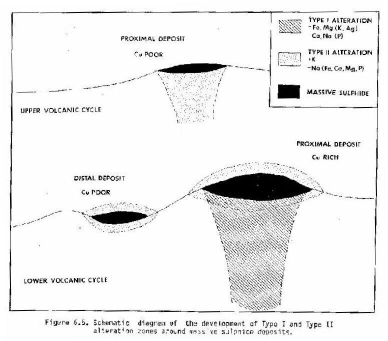 The presence of primary wallrock dispersion haloes has been documented at or around volcanic-exhalative massive sulphide deposits of various ages. Certain specific single-element lithogeochemical signatures are common to the wallrocks of almost all these deposits, while others are documented less frequently, and in some cases the reported gain or loss of an element at one deposit is reversed at another. Recognition that more than one alteration type may be associated with these deposits requires a judgement as to the significance of such variations.