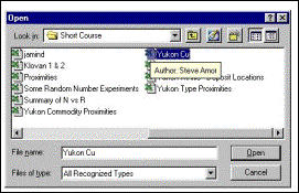 Step 4: Excel file created in Step 2 is selected (Surfer 7 will read Excel 2000 files; for older versions, file should be saved as Excel 3.0 or earlier, or as ASCII) |