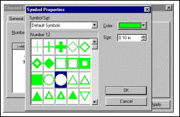 Step 8: Symbol types, sizes and colours are selected. This dialog box is opened by selecting a symbol (see Step 7) and double-clicking on it |
