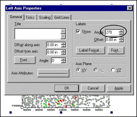 Step 11: This axis properties dialog box is opened by right-clicking the mouse on the axis. The angle (circled) will be altered from 270 degrees to 0 |