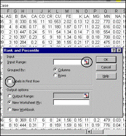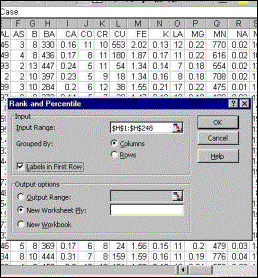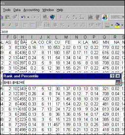 Step 4 More than one variable can be selected but in this instance only Ba will be processed. Clicking on the icon on the right of the box will return to the main Rank and Percentile window. |