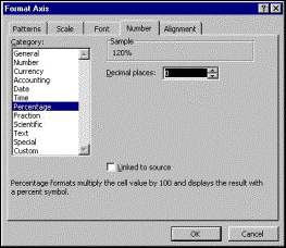 Step 11 Numbers on Y-axis are reformatted to percentages with no decimal places. Axis reformatting is complete and “OK” can be clicked. |