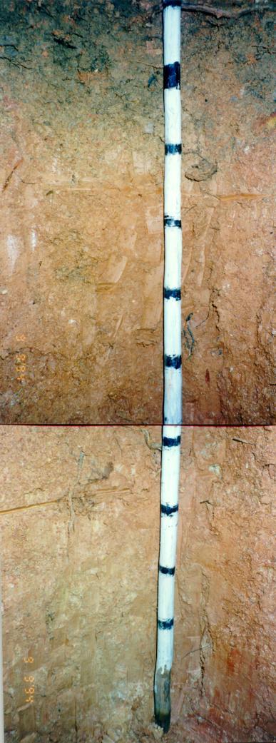Soil Profile, Chicanans River Concession. Staff is marked at 10-cm intervals