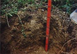 Soil Profiles from Epping Farm (Blue Mountain Inlier). Staff is marked at 10-cm intervals