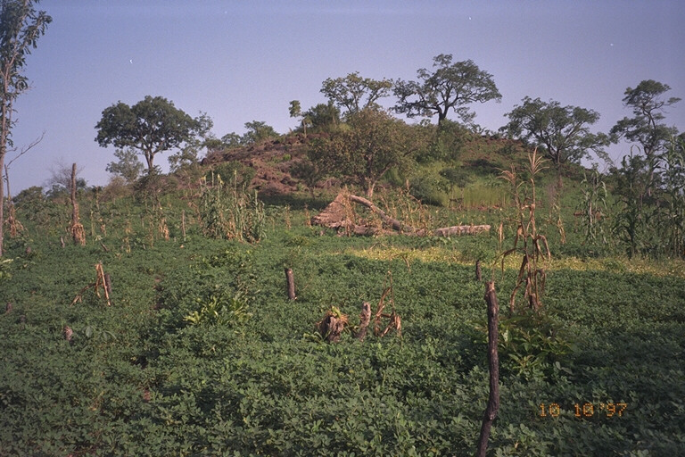 Hill of duricrust surrounded by peanut plants